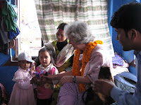 I was at the school forthe blind the other day. Always enjoyable to visit here as they love visitors. There is a 16 year girl there called Sabitra. She is a brilliant girl who is at the moment taking her school leaving certificate. She has learnedto speak perfect english by listening to the BBC news. The school has seeing and blind students and she always has the top marks forthewhole school. (sorry this computer justwill not work) She is hoping to win a scholarship for college but even if she does shewill haveto pay for living expenses in the dorm. She comes froma very remote village and she has a blind brother and a blind sister. They are at home in the village. Her sponsor only will sponsor her through tothe end of class 10 so she asked could I help her. I told her I was sure I could get her a $250 a year sponsor and she was very happy with that. If anyone you know would be interested in helping her please let me know. She is a wonderful girl. The other day she asked to feel my hair and asked what colour it was. I told her grey and she said does everyone in your country have grey hair? I told her no only old people to which she asked how old I was. When I told her 62 she and everyone else in the room gasped (62 very old here) and then she said but you only feel like you are 40 or 45. Now you know why I like her so much!